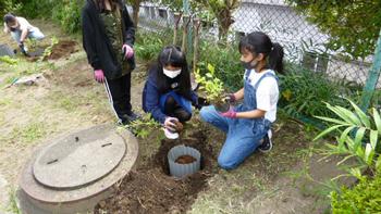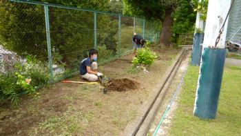 お花や芝生の種まき、ブルベーリーの苗木の植樹を行っています。