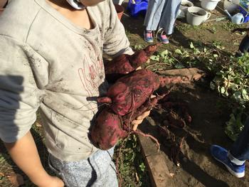 「先生、ここら辺にサツマイモがある感じがする!」