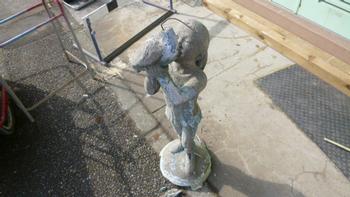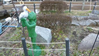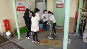 女の子たちに「その石像は、公田小学校ができた時に噴水池に立っていた石像だよ」