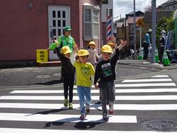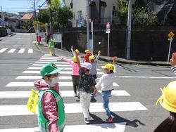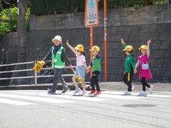 横断歩道を渡る前には、信号が青色になったことを確認して、右・左・右をしっかりと安全確認をしてから手を挙げて渡ることができました。自動車の往来が多い道路でも安全に行うことができていました。