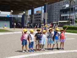 遠足のめあて「みんなで なかよく えんそくを たのしもう!」を出発式でみんなで声に出して確認し、いざバス2台に乗って出発進行!