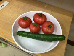 4月から個別支援学級で頑張って育てているトマトときゅうりがようやく収穫できました!
