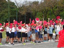最後の全体練習では、開閉会式、キラキラ体操、応援合戦の練習などを行いました。赤白の応援団の掛け声に合わせて、どちらの組も本番さながらの大盛り上がりでした。本番での戦いが今から楽しみです。