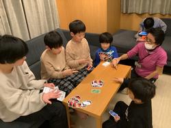 入所式を行い部屋に入るとみんな「きれい!」「二段ベッドだ!」「ソファーもあるよ」と部屋に驚いていました。夕方には、一緒に来た学校とつどいを行いました。学校紹介、じゃんけん列車、昆虫太極拳、さかえっ子体操を通して他の学校の友達とコミュニケーションを取っていました。夜は、ごはんとお風呂を済ませて部屋でレクを行いました。いつもなら家で過ごしている時間を友達と楽しく過ごす貴重な時間になりました。