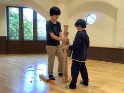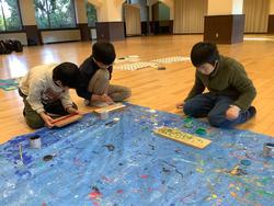 退所式が終わると公田小学校は「木っ端プログラム」に取り組みました。木っ端に絵を描いてそれを作品にするという内容でした。子どもたちはみんな楽しく取り組んでいました。また、森の家クイズや積み木の時間もあり充実した半日になりました。