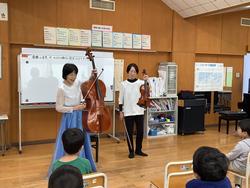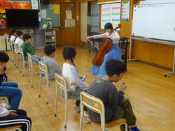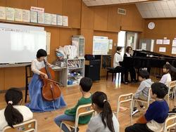 先日、バイオリンとピアノの曲である「ユモレスク」を学習したばかりの3年生でしたので、本物のチェロの演奏に興味津々に聴いていました。