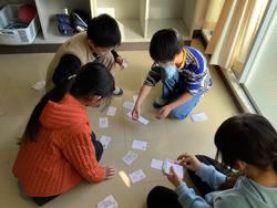 子どもたちはかるたの文やイラストを楽しみながらも、白熱したかるた取りで盛り上がっていました。