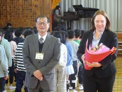 最後は、校歌のプレゼントに送られて、マリアナ先生とお別れしました。