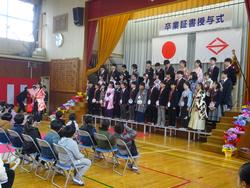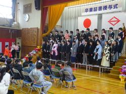 その後に行われた「第48回卒業証書授与式」では、4・5年生の在校生が見守る中、一人ひとり校長先生から卒業証書をしっかりと受け取りました。