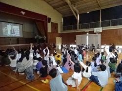 1年生に公田小学校について早く知ってもらうために、高学年児童が準備した学校についての説明画像・動画、楽しいクイズなどを楽しみました。