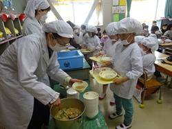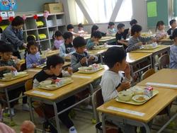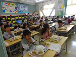 この日から給食も開始されました。小学校で初めて食べる給食に「おいしい!」「うれしい!」と歓声をあげていました。