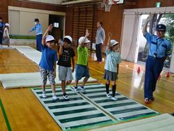 1・2年生は「歩行教室」をしていただきました。体育館内に作ったコースを生かして、様々な状況でどのように歩行したらよいかを実際に歩行しながら教えていただきました。保護者ボランティアの方々にもお手伝いをしていただきました。