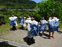 藍染作りは一人一人違う素敵な模様ができて子どもたちもとても喜んでいました。ミサンガも様々な色があり、巻くのを楽しんでいました。