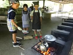 その後は、いよいよカレー作りです。子どもたちで火をつけて調理実習で学んだことを活かして食材を切り、カレーを作りました。難しいところなども班のメンバーと協力して美味しいカレーを作ることができました。