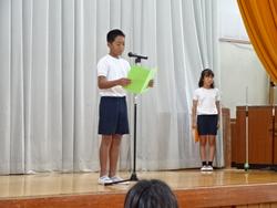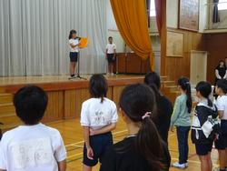 4年生、6年生の代表児童に、後期に頑張りたいことを話してもらいました。4月から継続的に取り組んでいる「なかよし班活動」で、さらに班の仲間と交流を深めたいと感じているようで、聞いていてうれしくなりました。