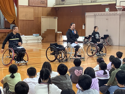 車いすバスケットは、ハンデのない人も車いすに乗れば一緒に楽しむことができる素敵なスポーツです。今回、競技をされている選手の方に競技の魅力を伝えてもらい、また実際に競技を体験することで、車いすバスケットやパラスポーツに興味を持った子どもたちが多くいました。
