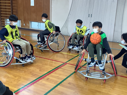 4~6年生はチームを作り、主催の方が用意くださった15台もの競技用車いすを使って「車いすリレー」と「車いすバスケットボールの試合」を体験。初めて乗る車いすに戸惑いながらも、どの子も笑顔いっぱいで、楽しく充実した体験をさせていただきました。