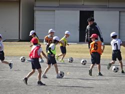 2年生の子どもたちは、コーチとボールけりの運動遊びをしたり、チームに分かれてゲームをしたりして楽しみました。