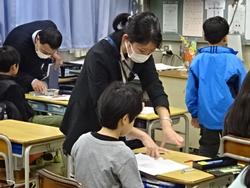 今回は最終回となる第5回目の授業研究会を実施し、4年1組的場教諭、5年2組佐山教諭の授業を公開して研究しました。