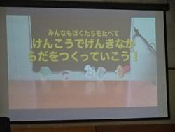 全校児童にアンケートをとって、子どもたちの苦手な野菜(1位なす 2位きのこ類 3位ピーマン)について考えるペープサート劇を動画で披露しました。