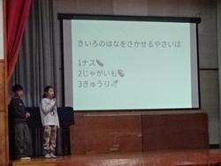 また、様々な野菜についての楽しいクイズを出題して、全校児童に一緒に考えてもらいました。