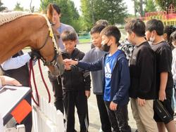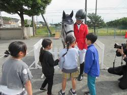 鉄小学校に馬が来た!JRA日本中央競馬会主催、朝日小学生新聞共催の事業で、全国、約10校で実施されるものです。児童からの要望があり、申し込んだところ当選し、実現しました。