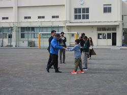 最後に全校児童で記念写真を撮影し、JRAから漫画「うまは友だち」を全員分、また、図書館にと、200種類いる馬の図鑑が代表児童に手渡されました。