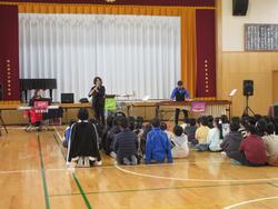 文化庁による「学校における文化芸術鑑賞・体験推進事業」としてJILTONE(ジルトーン)による演奏を鑑賞しました。低・中・高学年に分かれ、様々な楽器の音色に触れながら楽しみました。様々なパターンに編曲された鉄小校歌や、ラジオ体操、スペイン語で「箱」を意味するカホンという名前の楽器の演奏など、拍手をしたり、リズムに乗ったりしながら、みんな笑顔でした。