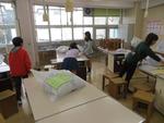 入学式の前日、新6年生が登校し、入学式や新年度の準備を
