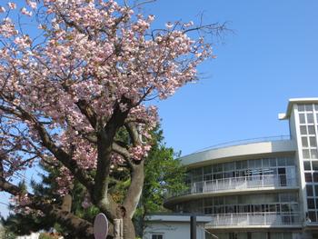 校門脇の八重桜が花盛りです。