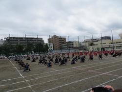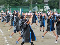 蒔田中学校の木村校長先生の「構え」の掛け声に、腰を落とし、力いっぱい踊り切りました。