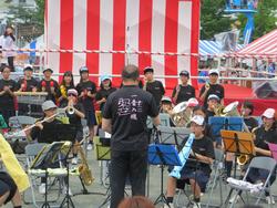 迫力の演奏を聴かせてくれた蒔田中吹奏楽部。本校の卒業生も活躍しています。