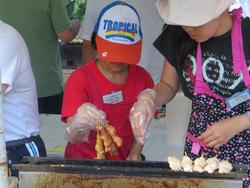 さてこの南まつり、南区の小中学校から希望者を募って、焼きそばや焼き鳥などのお店を手伝う取組が恒例として続けられています。今年も蒔田小学校から、二日間で5名の5年生たちが参加しました。