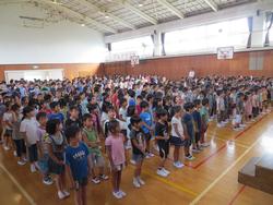 40日ぶりに全校が集った朝会では、校長先生から、オリンピックを題にした話を聞きました。蒔田小学校の卒業生からもオリンピック選手が出ていたと知って、びっくりしている子もいました。