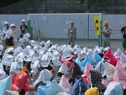児童はいざというとき慌てずに避難することができるように、教職員は負傷者の設定、校内の連絡体制の徹底、避難経路の確認等、より実際の発災に近い形で児童を安全に避難させることができるように、全校一丸となって取り組みました。
