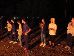 夜は、念願のキャンプファイヤー!炎の周りを取り囲んで、友情を深め、思いを高める子どもたち。空からは満月と、夏の大三角形が顔をのぞかせる場面も。とてもいい時間を過ごすことができました。