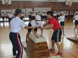 3校時は5年生を対象に「跳び箱運動」のご指導。開脚跳び、抱え込み跳び、台上前転について、技のポイントのご教示と補助をいただきました。