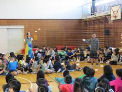 蒔田小学校では、年に1回、「芸術鑑賞会」を行っています。体育館を舞台に、目の前で見る「本物」は、蒔田小の児童にとってよい経験となり、感動を得ています。