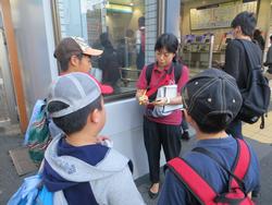 駅でチェックを受ける子どもたち。ホームでの待ち方もよくできました!