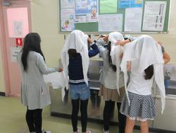 今月末に青少年赤十字で「救急法交流会」が行われます。その活動の一環として、高校生が蒔田小学校に包帯の巻き方などを教えるために、10月から11月初旬にかけて3回、来校してくれました。
