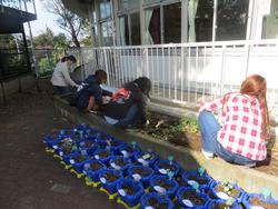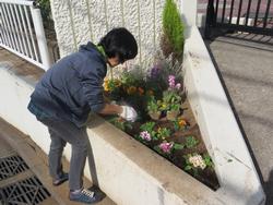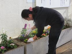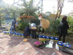 蒔田小学校では、PTAの有志の方を中心に、校門・ピロティ付近を中心に花壇の整備をしていただきました。