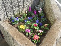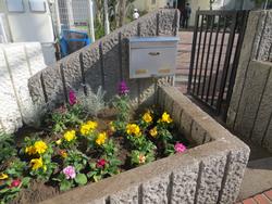 ピロティ脇のプタンターや正門横に、きれいな花が植えられました。