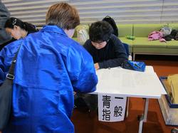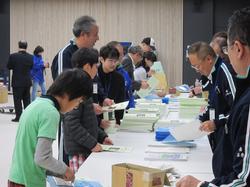 会場前の資料準備からお手伝い。受付も礼儀正しく行う蒔田っ子。