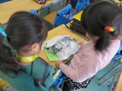 校舎内を隅から隅まで案内したり、教室で実際に使う道具を見てもらったり、4月に入学する園児たちが小学校に慣れることができるよう、1年生が一生懸命に説明をしていました。