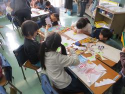 2年2組では「図工」。生き生きと造形活動に取り組んでいる様子が伝わってきます。
