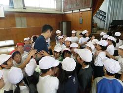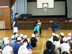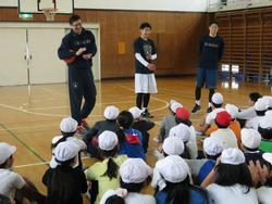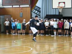 来てくださったのは、横浜を本拠地とする「横浜ビー・コルセアーズ」。6年生と5年生がそれぞれ1時間ずつ、バスケットボールの指導を受けました。