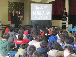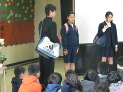「ビー・コルセアーズ」に指導を受けた午後、6年生は蒔田中学校に出かけました。新年度を控え、「体験入学」に参加するためです。