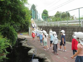 9月1日、防災の日にあわせ防災授業と避難訓練が行われました。新型コロナウイルスの影響で分散した形での避難となりましたが、子どもたちは(お・か・し・も)の約束を守り、しっかりと避難をすることができました。