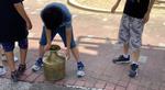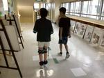 先日はネパールの子どもたちが実際に使っている水がめに水を入れて持ち運ぶ体験を行いました。また、高齢者疑似体験では、アイマスクやおもり、サポーターをつけ、校内を歩く体験を行いました。