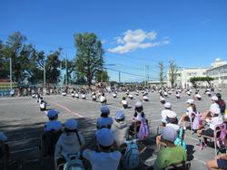 晴天の中、令和3年度蒔田小学校どきどきスポーツフェスティバルが行われました。新型コロナウイルス感染拡大防止のため、低・中・高、3ブロックに時間帯を分けての開催となりました。